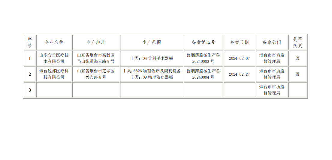 烟台市发放《第一类医疗器械生产备案凭证》公告(第2024002号).pdf