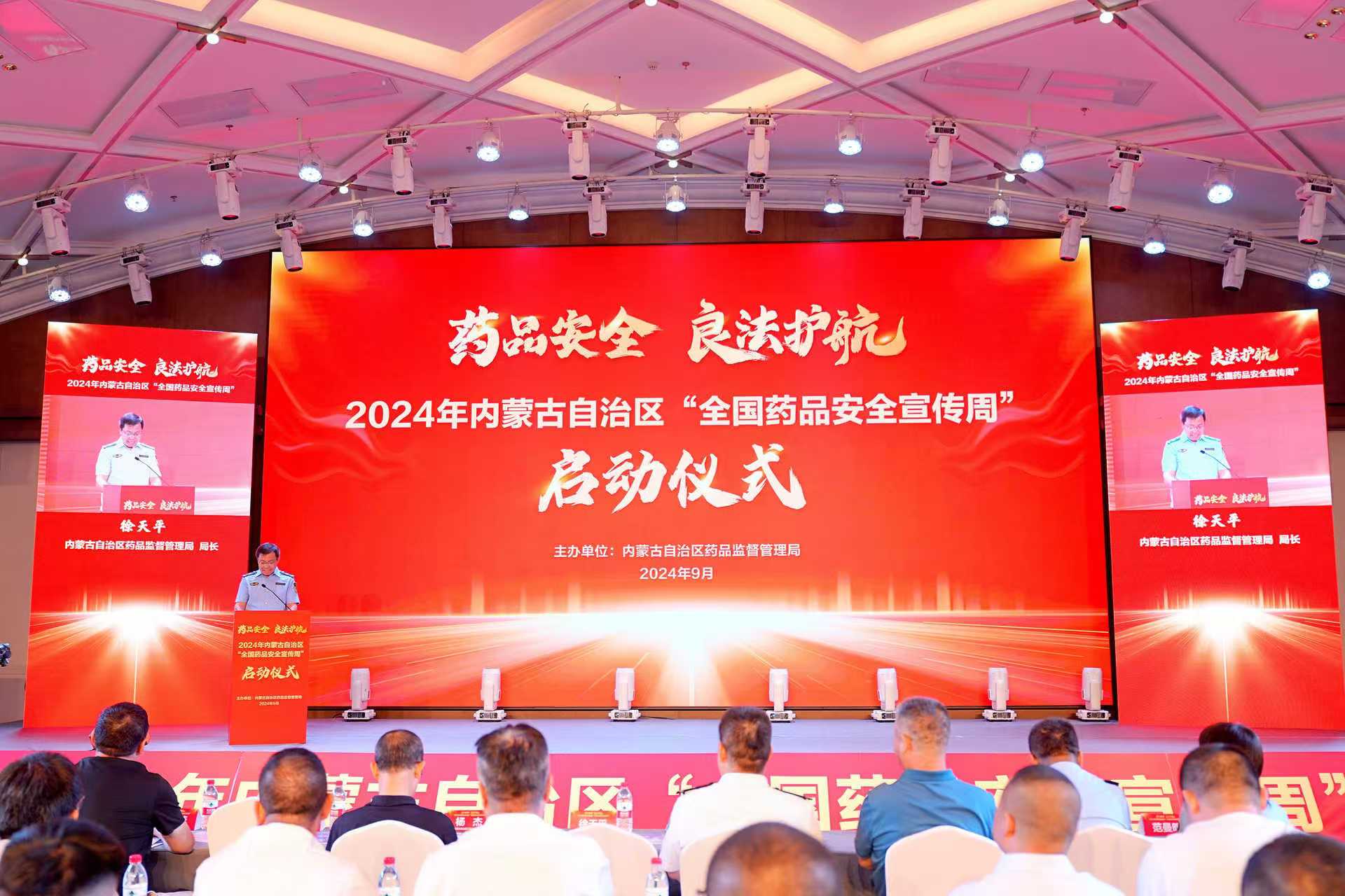 9月2日,2024年内蒙古自治区 “全国药品安全宣传周”活动启动仪式在呼和浩特市举行。自治区药监局党组书记、局长徐天平出席启动仪式并致辞。自治区各直属事业单位负责人及工作人员,医药行业政协委员、企业协会、新闻媒体、群众代表等共200余人参加启动仪式。