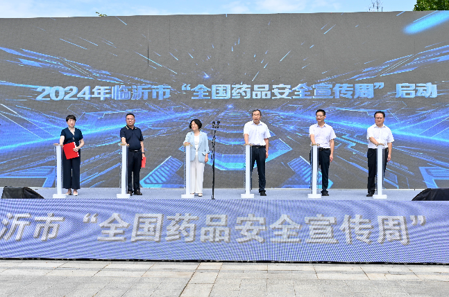 出席仪式的各位领导共同按下启动按钮,宣布2024年临沂市药品安全宣传周正式启动。