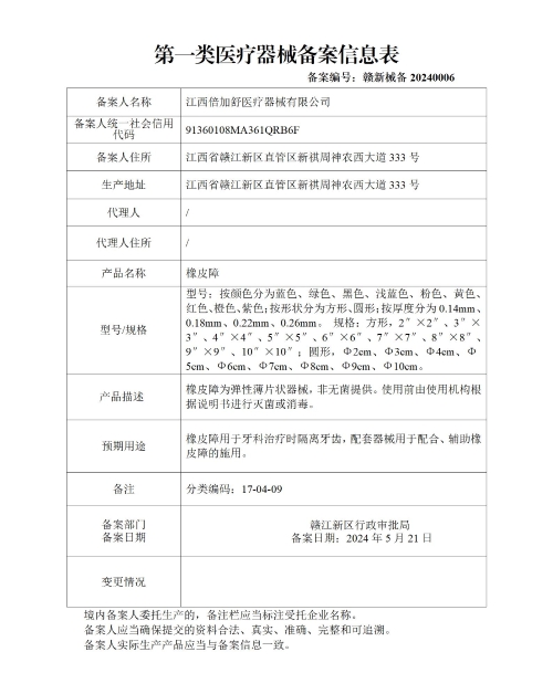 根据《医疗器械监督管理条例》和《医疗器械注册与备案管理办法》的规定及有关要求,经对备案材料进行形式审查,下列第一类医疗器械产品符合规定,现将备案信息予以公示。