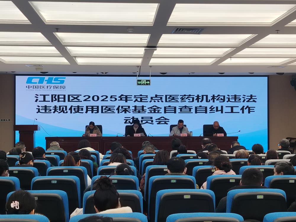 为深入贯彻落实医保基金监管要求,持续规范定点医药机构医保基金使用管理,2月13日上午,江阳区医保局组织召开全区2025年定点医药机构违法违规使用医保基金自查自纠工作动员会。各定点医院、零售药店连锁公司、单体药店、诊所(门诊部)、村卫生室(社区卫生站)主要负责人及医保经办人共计200余人参会。
