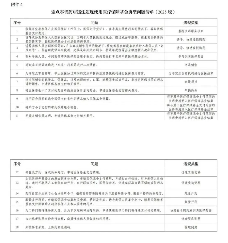 4、定点零售药店违法违规使用医疗保障基金典型问题清单(2025版)