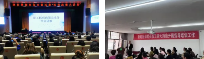 一是举办医保政策大讲堂。深入参保单位以及两定机构举办医保政策大讲堂,围绕职工医保政策、经办服务以及医保基金监管政策法规进行宣传解读,提升参保单位、参保人员以及两定医药机构自律意识,自觉做到不越红线,坚守底线,共同守护好医保基金的安全。