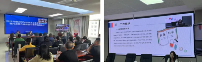 三是召开全盟打击欺诈骗保警示教育视频会议。组织全盟各级医保局、医保中心、各定点医药机构负责人召开全盟医保基金监管政策法规宣讲暨打击欺诈骗保警示教育视频会议,观看打击欺诈骗保警示教育片,签订“防范欺诈骗保承诺书”,医保基金骨干系统讲解了医保基金监管政策法规。各旗(区)医保局根据实际相继开展了相关警示教育活动。