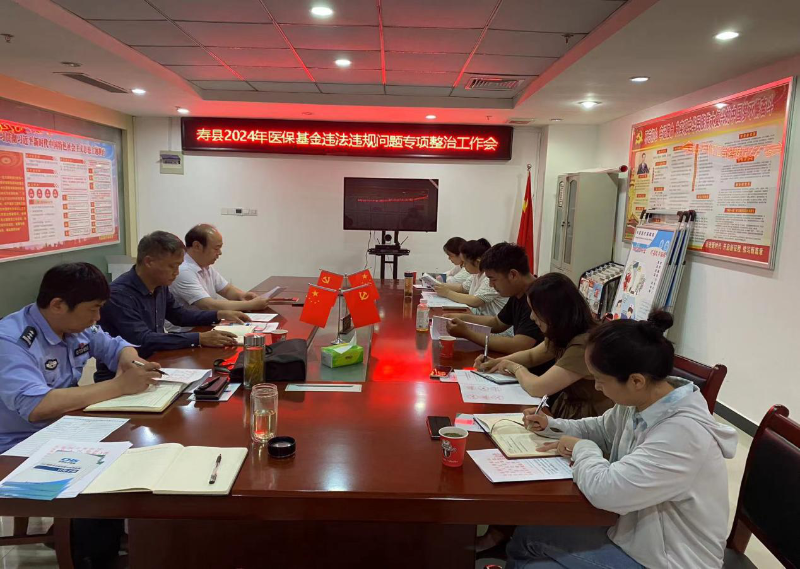 5月31日,寿县医保局、寿县人民法院、寿县检察院、寿县公安局、寿县财政局、寿县卫生健康委联合召开寿县2024年医保基金违法违规问题专项整治工作会。