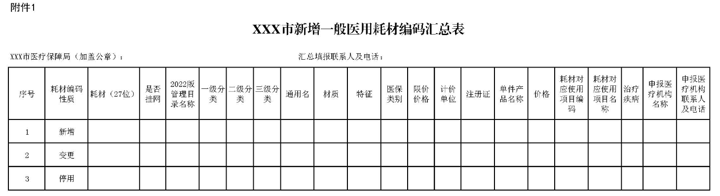 第二步:医用耗材挂网公布后,各定点医疗机构向医疗保障部门申报新增、变更、停用医用耗材编码。其中,市级及以下医疗机构向市医保局医药价格和招标采购科申报,市医保局将申报情况核对汇总后统一报省医保局(附件4);省直医疗机构向省医保局医药价格和招标采购处申报(附件5)。