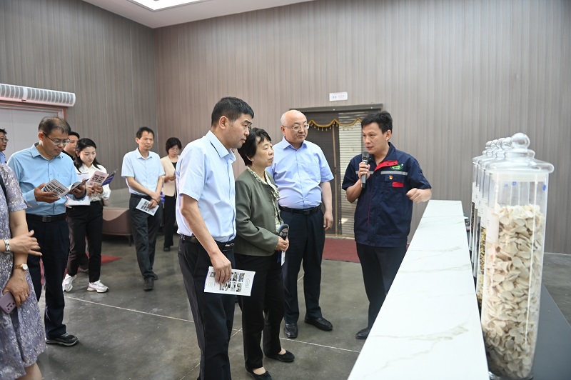 在河南云台山中药科技有限公司,段慧萍、田文才一行参观了药材加工生产线、药材食品展厅,听取企业关于道地药材种植、生产、研发及产品质量管控等情况介绍,征求企业对药品监管工作的意见建议,希望企业发挥道地药材原产地优势,在严把产品质量关的基础上,积极推进中药饮片、中成药制剂研发,推动怀药全产业链融合发展,助力河南中医药传承创新发展。