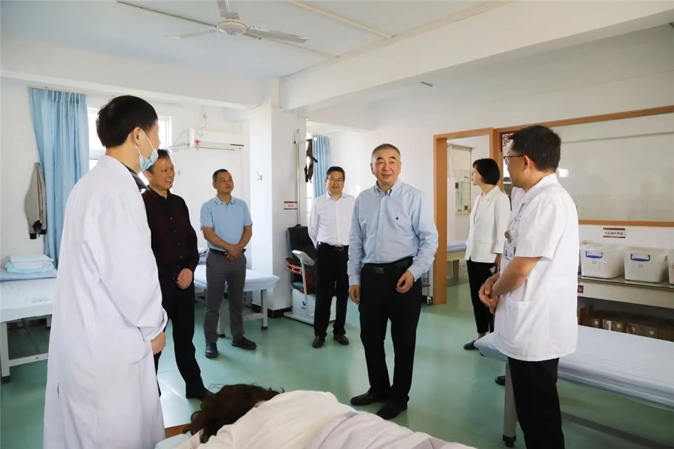 刘同柱一行第一站在泾县调研泾县中医院和黄村镇卫生院中医馆。在泾县中医院深入该院中药房、针灸科、推拿科、中医特色护理门诊、中医专科等门诊科室以及骨伤科病区,现场察看中医药服务环境、基础设施,看望慰问临床医护人员,同时听取了医院人才培养、中医专科建设、市县一体化发展等情况汇报。在黄村镇卫生院中医馆,现场查看黄希松医师的诊疗环境及中医药科室的医疗服务、中医药适宜技术服务,交流中医药业务开展的基本情况。刘同柱对泾县卫生健康事业特别是中医药发展近年来取得的成绩给予高度肯定并要求,中医医院要充分发挥好中医药特色优势,不断提升中医药服务质量和水平,努力打造品牌特色,为推动中医药事业高质量发展作出积极的贡献。对基层医疗卫生机构进一步发展中医药特色服务提出了殷切期望,希望继续守正创新、传承发展中医药优势,更好地服务基层广大群众,为人民健康保驾护航。