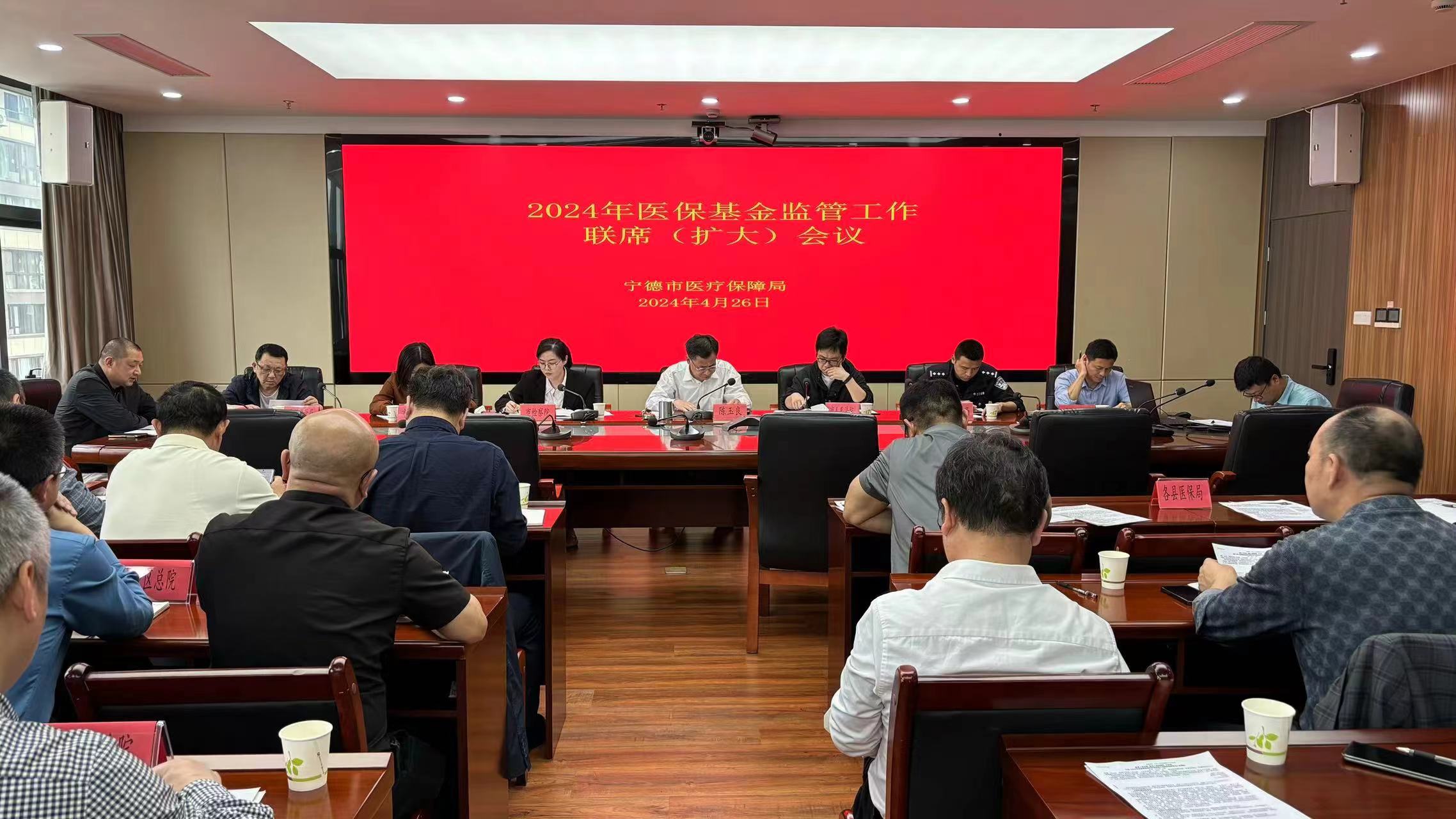 为进一步贯彻国家、省有关文件精神,强化各部门在医保基金常态化监管工作的协调配合,压实各方责任,提升医保基金综合监管能力,引导医保定点医药机构规范医药服务行为,切实维护基金安全,4月26日,宁德市医保局会同市中级人民法院、检察院、公安、财政、卫健、市场监管等部门组织市属公立医疗机构、各县(市、区)总医院、部分定点连锁药店召开2024年度宁德市医疗保障基金监管工作联席(扩大)会议,市医保局党组书记、局长陈玉良,各单位、定点医药机构代表出席会议。