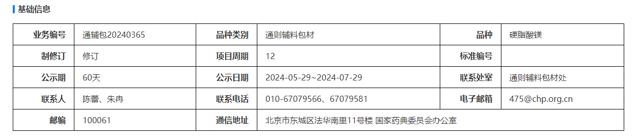 我委拟修订硬脂酸镁国家药用辅料标准。为确保标准的科学性、合理性和适用性,现将拟修订的标准公示征求社会各界意见(详见附件)。公示期自发布之日起二个月。请认真研核,若有异议,请及时在线反馈,并附相关说明、实验数据和联系方式。来函需打印后加盖公章,个人来函需打印后本人签名,并邮寄至我委通讯地址。