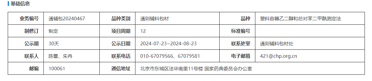 我委拟制定塑料容器乙二醇和总对苯二甲酰测定法。为确保标准的科学性、合理性和适用性,现将拟制定的标准公示征求社会各界意见(详见附件)。公示期自发布之日起一个月。请认真研核,若有异议,请及时在线反馈,并附相关说明、实验数据和联系方式。来函需打印后加盖公章,个人来函需打印后本人签名,并邮寄至我委通讯地址。