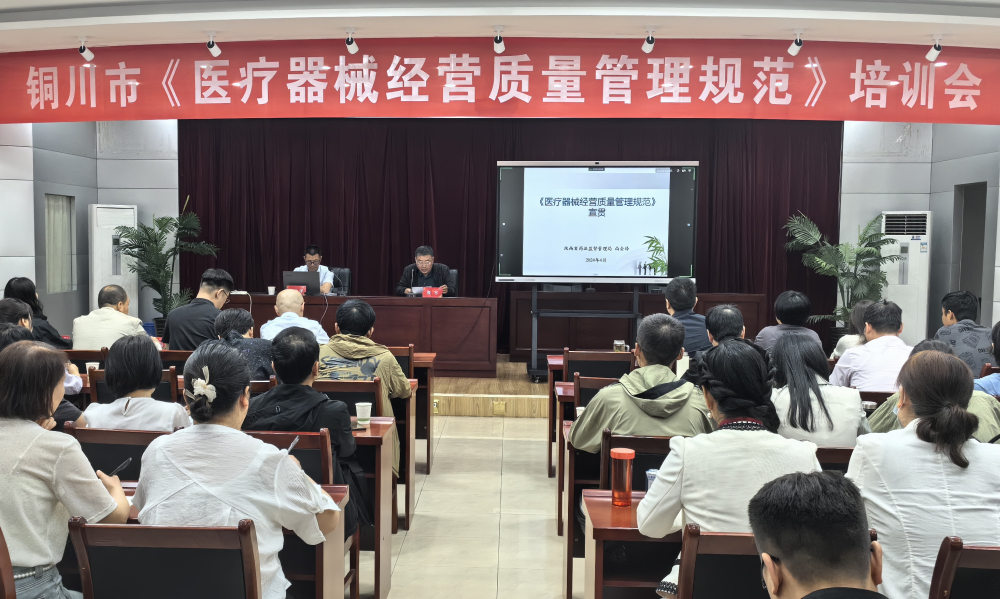 新版《医疗器械经营质量管理规范》(以下简称《规范》)将于今年7月1日正式实施。为切实加强医疗器械质量安全监管、规范医疗器械经营活动,提升医疗器械质量管理水平,全面贯彻实施新版《规范》,4月28日,铜川市举办新版《医疗器械经营质量管理规范》宣贯培训会,省药监局医疗器械监管处四级调研员尚会泽应邀作专题培训授课。本次会议采用“主会场+分会场”视频会议形式召开,设立1个主会场和5个分会场,铜川市各级医疗器械监管人员和全市医疗器械经营批发企业负责人、质量负责人共400余人参加了培训。