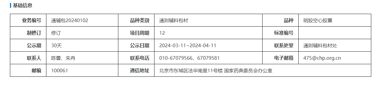 我委拟修订明胶空心胶囊国家药用辅料标准。为确保标准的科学性、合理性和适用性,现将拟修订的标准公示征求社会各界意见(详见附件)。公示期自发布之日起一个月。请认真研核,若有异议,请及时在线反馈,并附相关说明、实验数据和联系方式。来函需打印后加盖公章,个人来函需打印后本人签名,并邮寄至我委通讯地址。