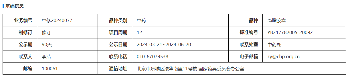 我委拟修订消朦胶囊国家药品标准,标准编号:YBZ17782005-2009Z。为确保标准的科学性、合理性和适用性,现将拟修订的消朦胶囊国家药品标准公示征求社会各界意见(详见附件)。公示期自发布之日起三个月。请认真研核,若有异议,请及时在线反馈,并附相关说明、实验数据和联系方式。来函需打印后加盖公章,个人来函需打印后本人签名,并邮寄至我委通讯地址。