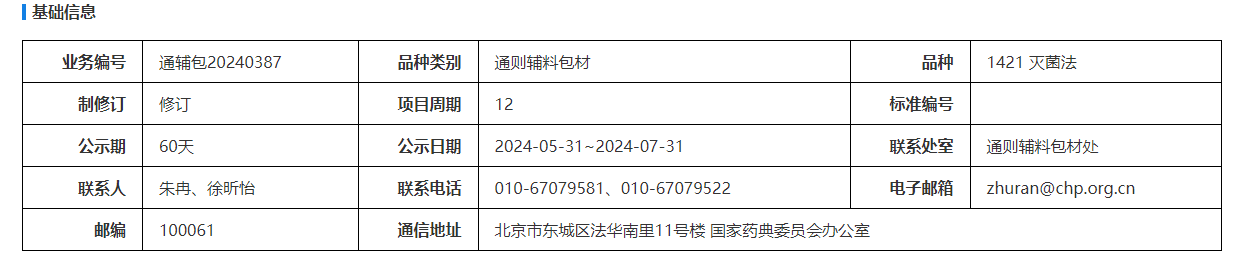 我委拟修订1421 灭菌法。为确保标准的科学性、合理性和适用性,现将拟修订的1421 灭菌法公示征求社会各界意见(详见附件)。公示期自发布之日起两个月。请认真研核,若有异议,请及时在线反馈,并附相关说明、实验数据和联系方式。来函需打印后加盖公章,个人来函需打印后本人签名,并邮寄至我委通讯地址。