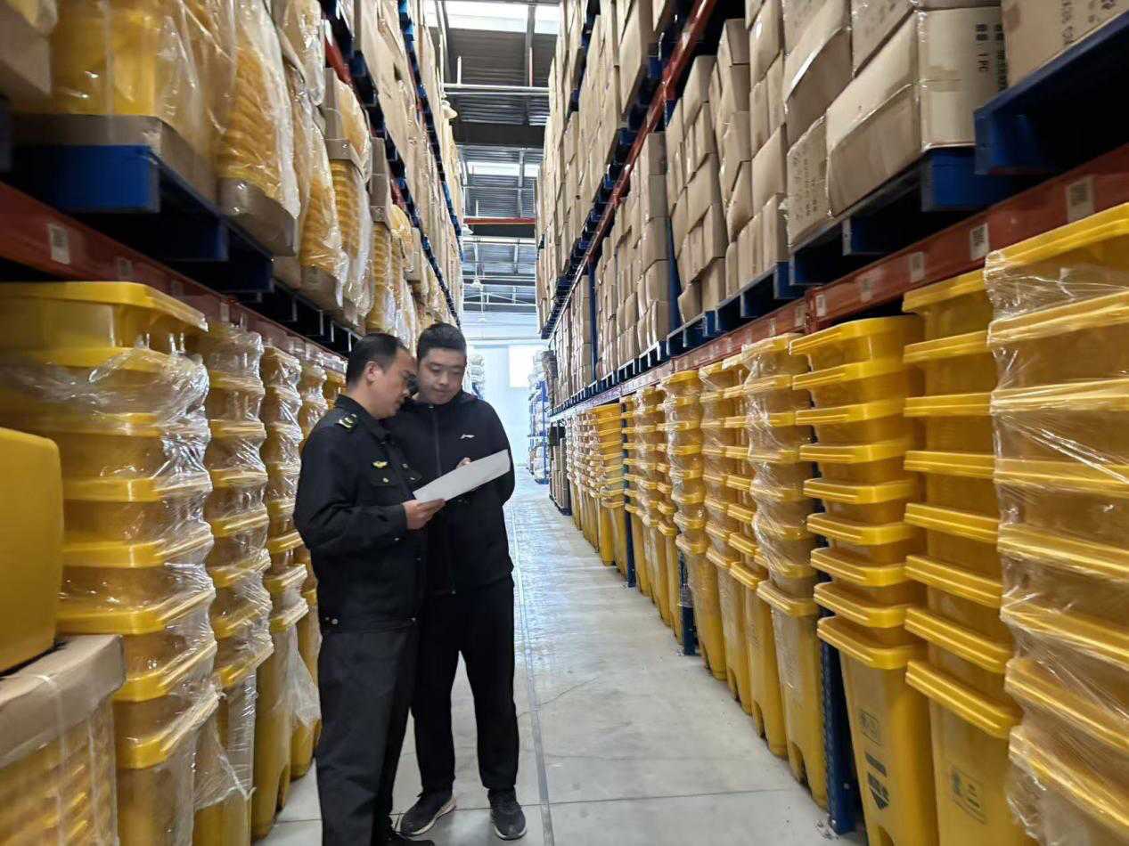执法人员深入企业储备仓库及管理现场,严格按照检查标准,详细检查物资品种数量、台账管理、储存条件、有效期管理等情况,随机抽查部分产品资质、随货同行单等。针对物资登记台账填写不完善、未进行温湿度监测登记等问题,执法人员现场要求企业限期整改,并跟踪督促闭环落实。