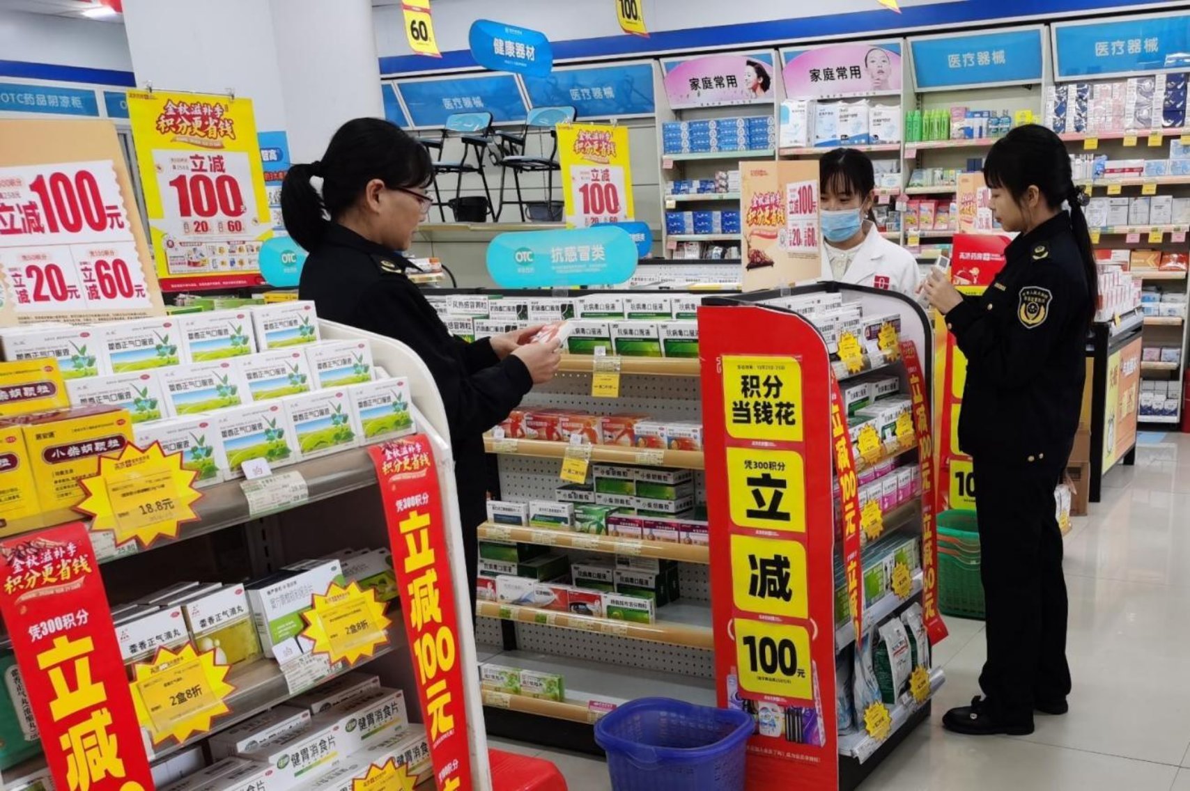 (图为执法人员对零售药店药品促销情况开展现场检查)